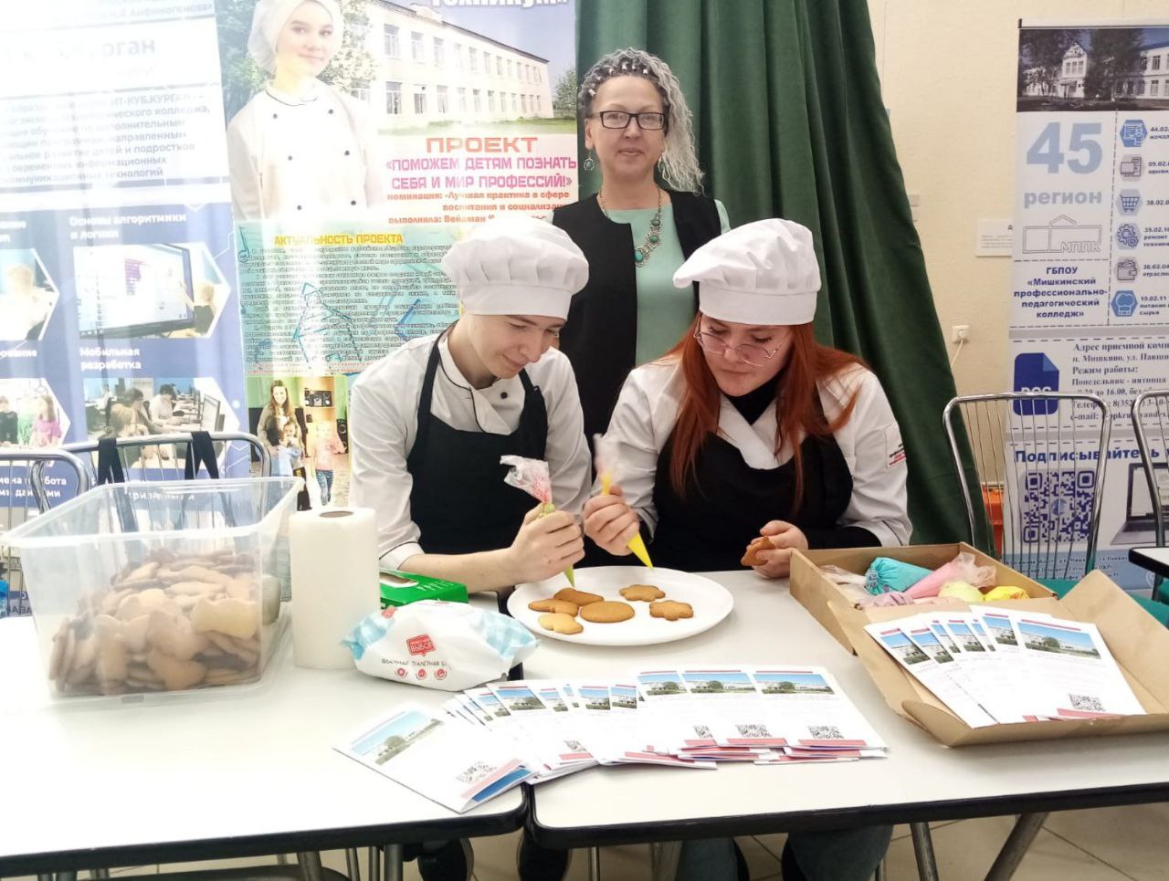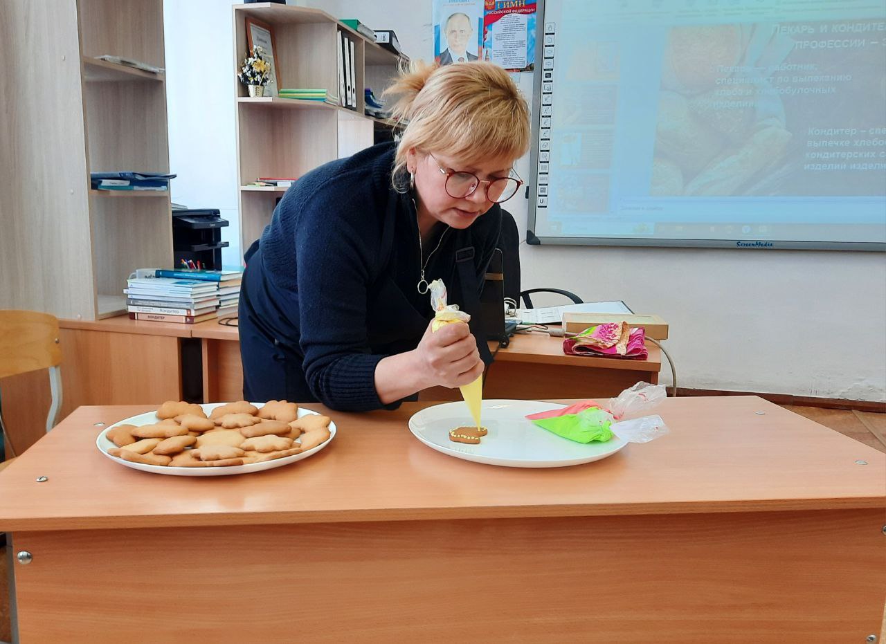 В профориентационной выставке принял участие и наш техникум. Студенты, под руководством преподавателя — Орловой Елены, провели для школьников мастер — класс по оформлению медовых пряников сырцовой глазурью.